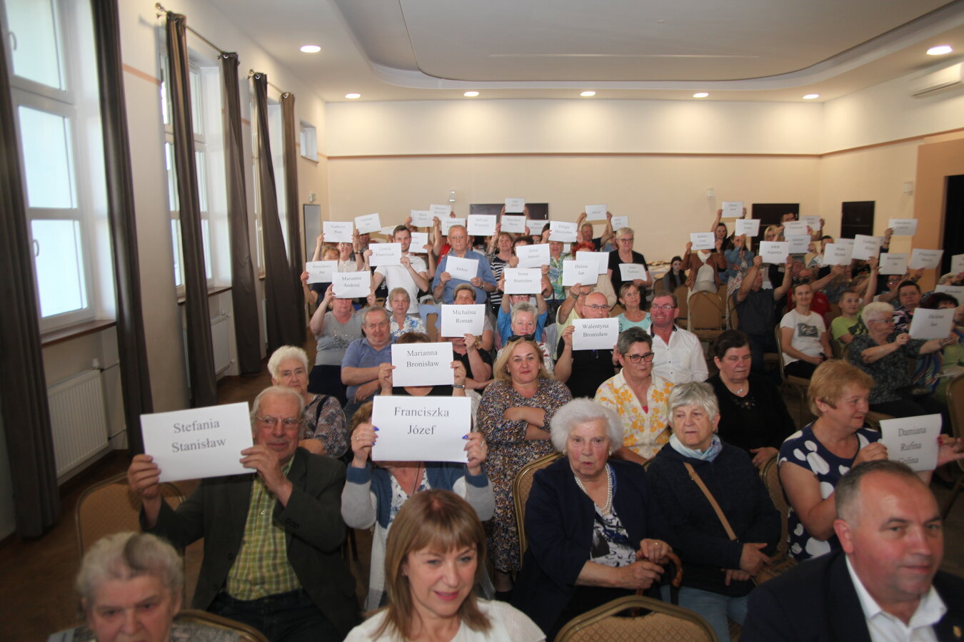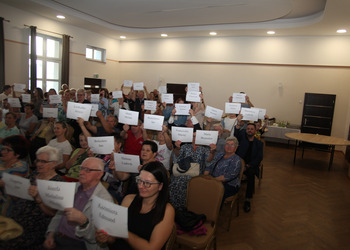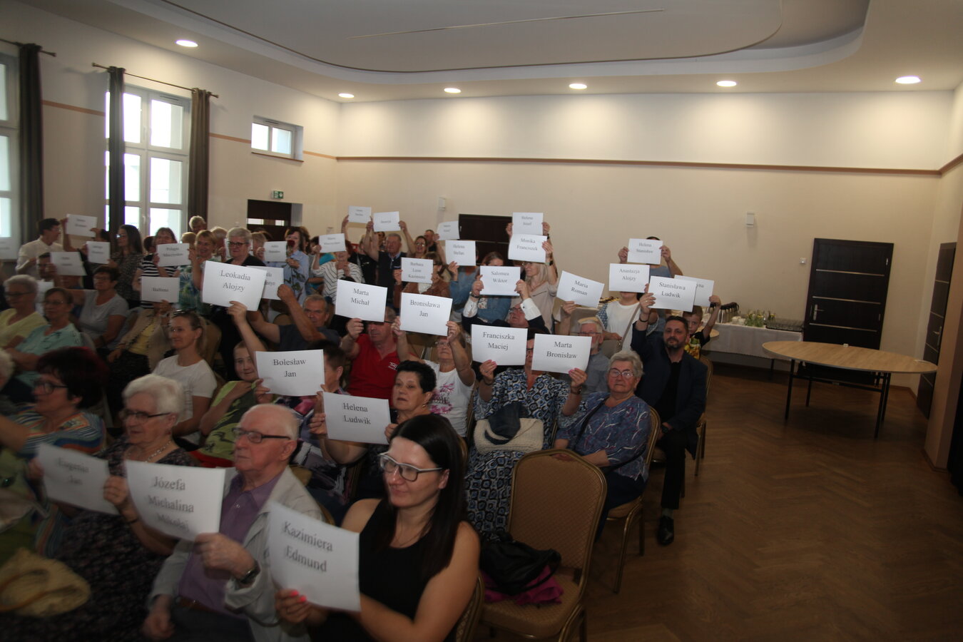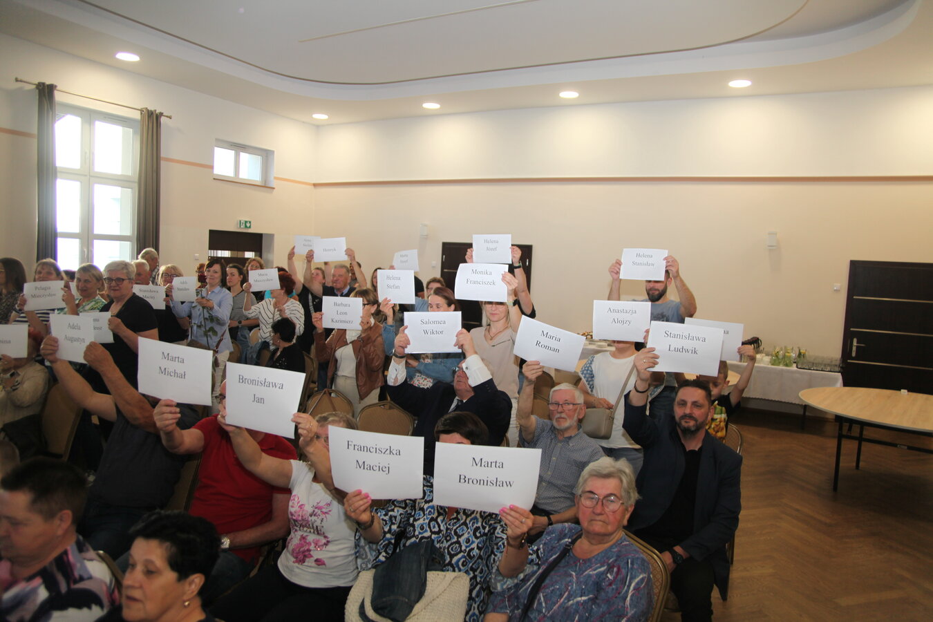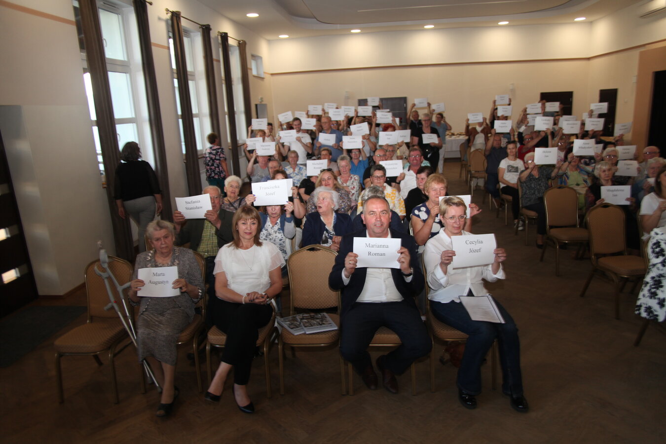 Członkinie KGW rozdały zebranym kartki z imionami bohaterów książki, a fotograf Grzegorz Klamka wykonał zdjęcie - ,,Pamięć Pokoleń”.