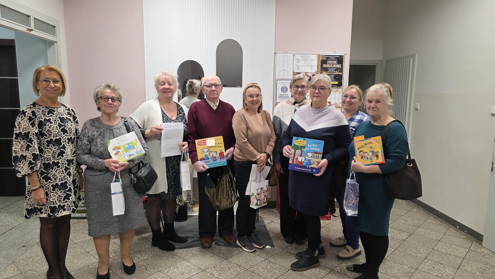 W piątek, 14 listopada 2025 roku, w ramach współpracy z Samorządowym Przedszkolem w Wijewie, odbyło się wyjątkowe, pełne ciepła spotkanie międzypokoleniowe. Nasi Seniorzy, pani Renata, pani Elżbieta, pani Agnieszka, pani Anna, pani Maria, pani Bożena oraz pan Jerzy pojechali do przedszkola, gdzie z wielkim zaangażowaniem i serdecznością czytali maluchom ulubione bajki.