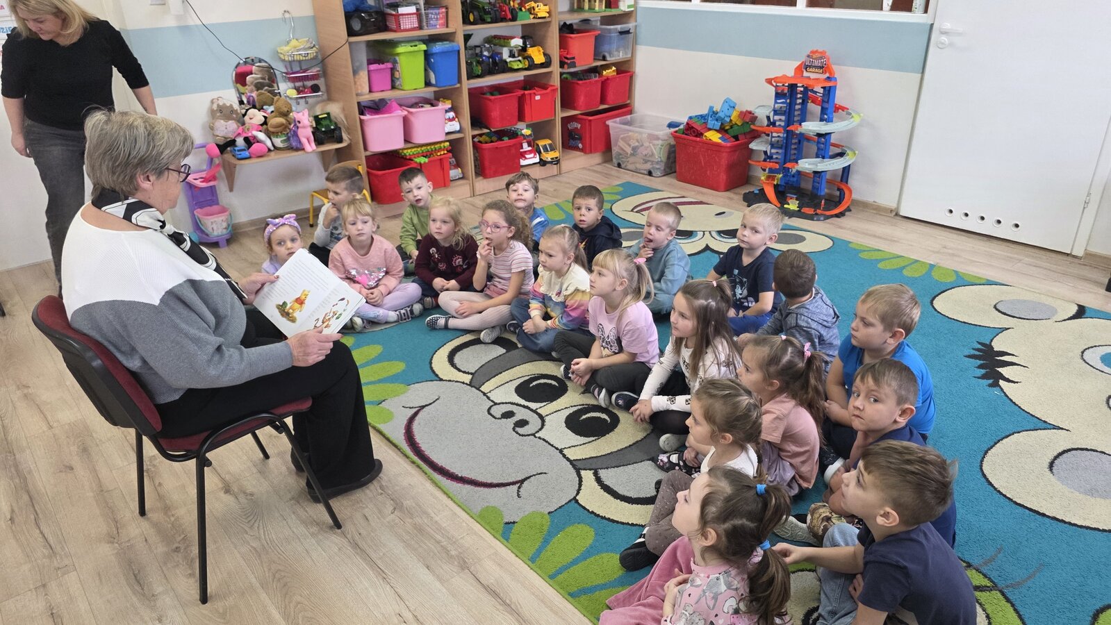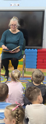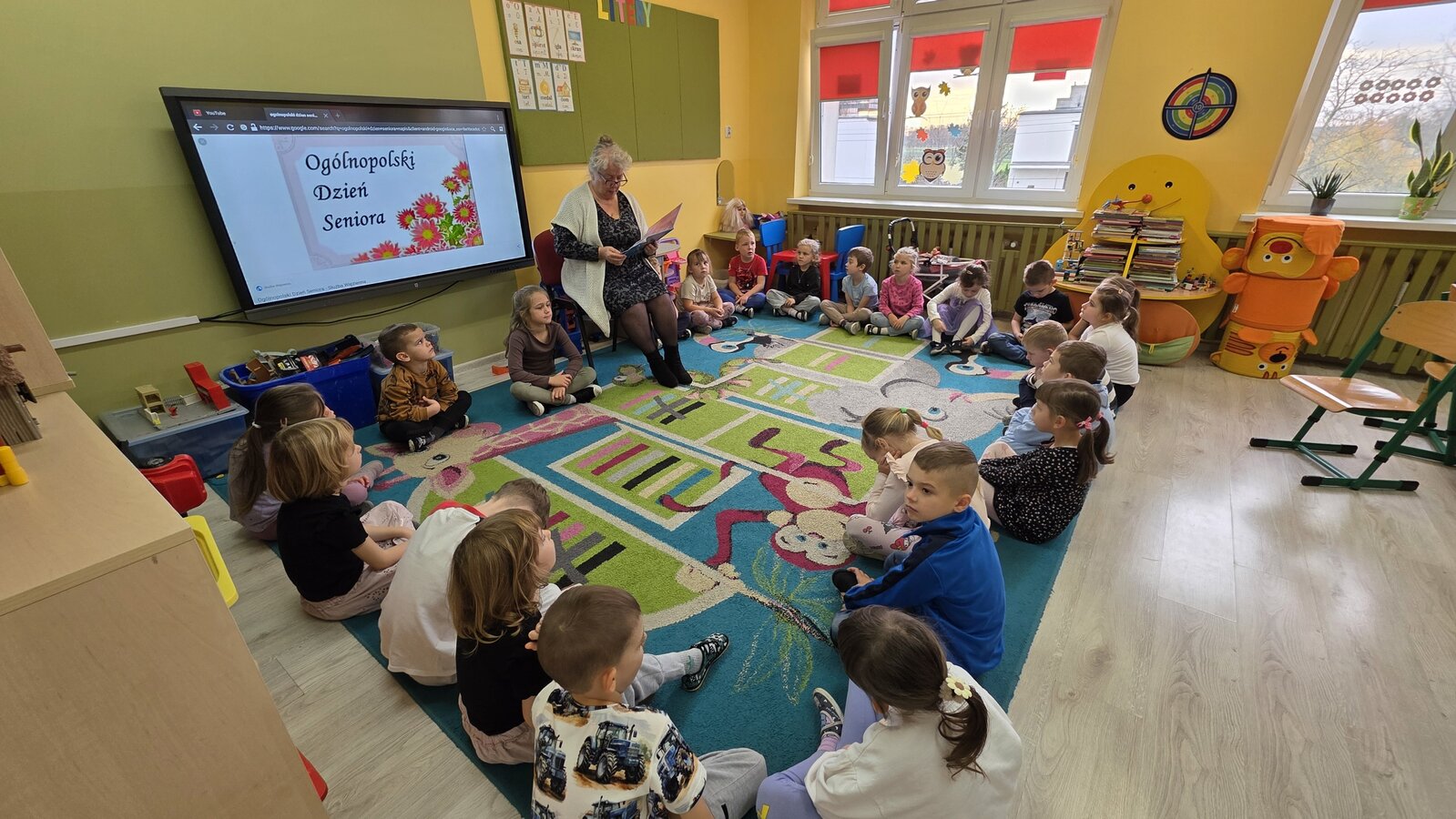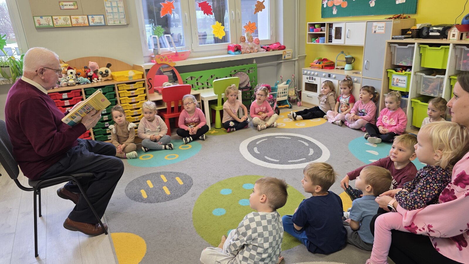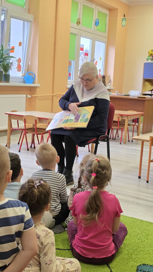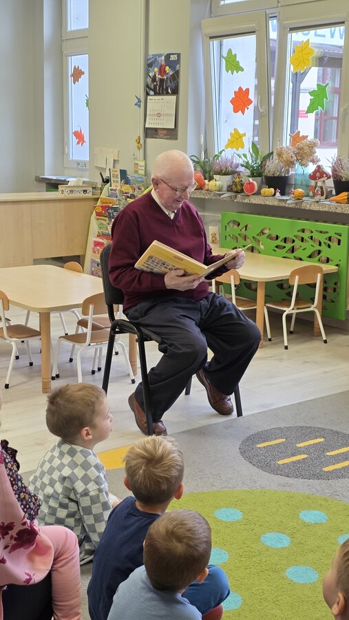 Czytanie bajek w przedszkolu oraz zorganizowany przez nich Dzień Seniora