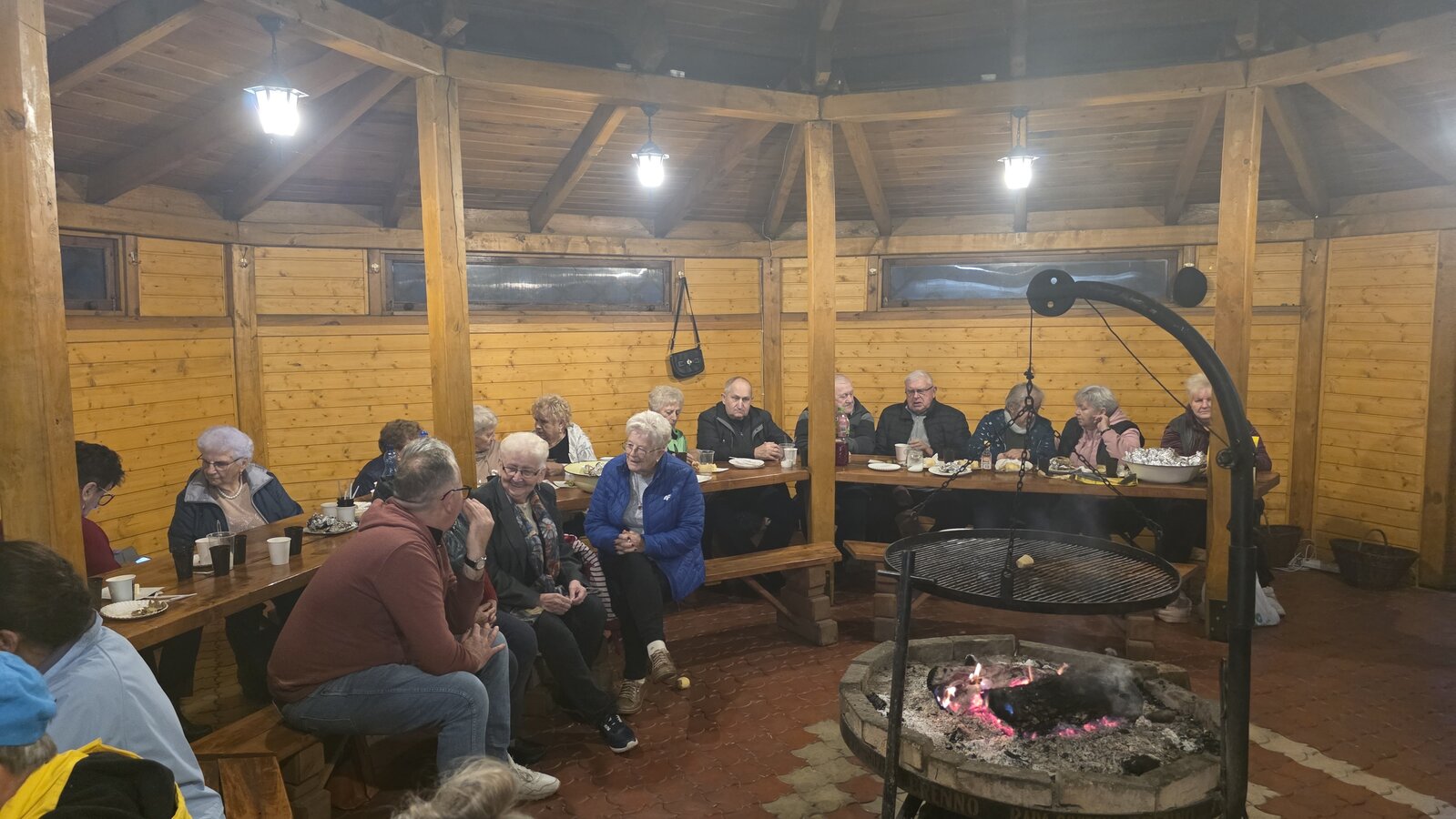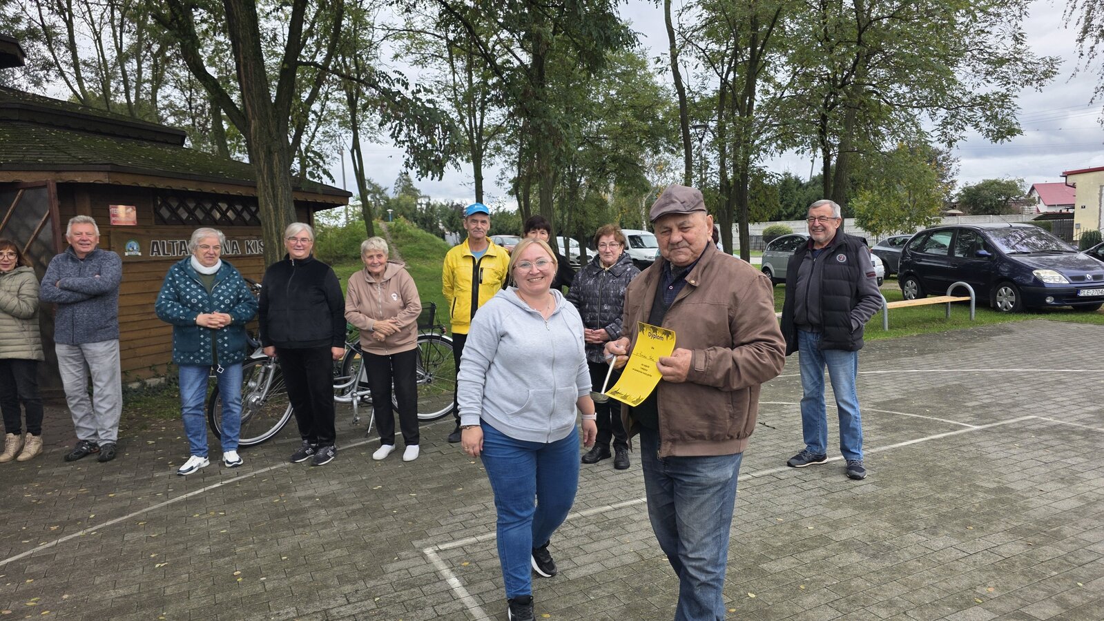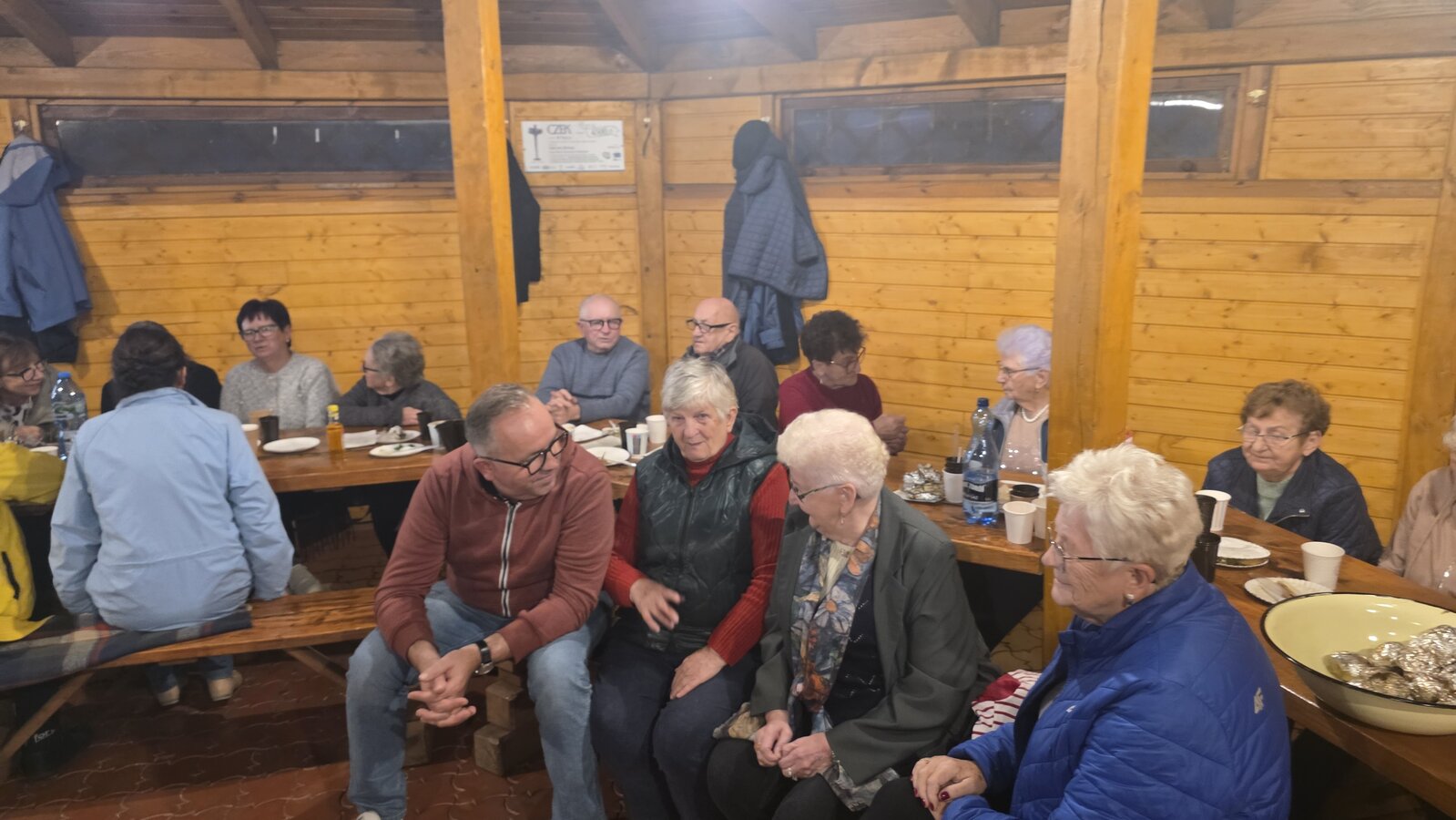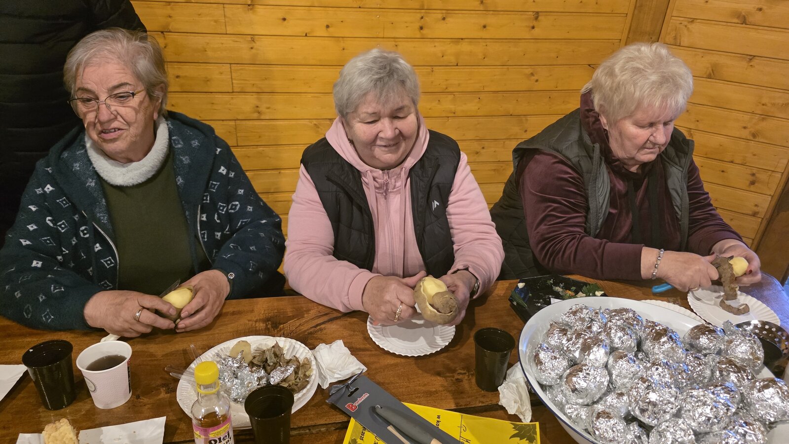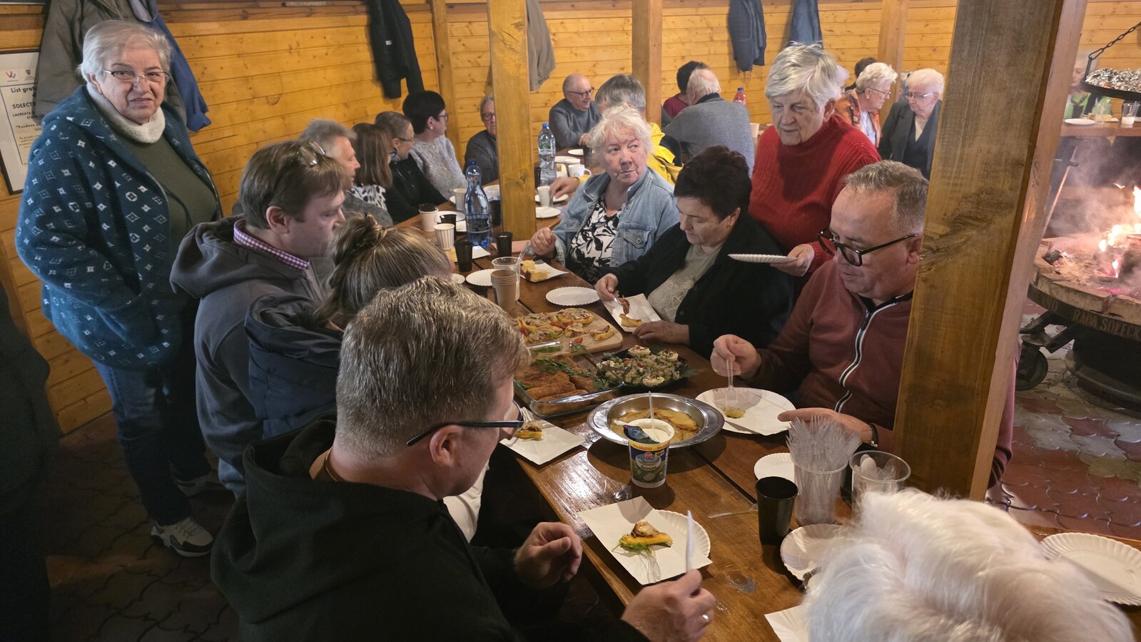 W czwartek 9 października 2025 r. odbyło się klubowe święto pyry. Seniorzy wraz z zaproszonymi gośćmi zebrali się w Altance na Kisowni i wspólnie biesiadowali. Najpierw była kawa i ciacho, a później pierwsza konkurencja – rzut ziemniakiem do koszyka. Wśród licznej grupy śmiałków, po dogrywce, zwycięzcą został pan Franek. Nie mogło zabraknąć również naszego klubowego MasterChefa. W tej edycji zwyciężczynią została pani Krysia ze swoimi krokietami ziemniaczanymi. W końcu nadszedł czas na pieczone ziemniaczki. Smakowały wybornie razem z gzikiem oraz chlebem ze smalcem i ogórkiem kiszonym. Lecz to jeszcze nie był koniec naszego świętowania! Kolejną konkurencją było obieranie pyrki tak, żeby obierka była jak najdłuższa. Tu też bezkonkurencyjny okazał się pan Franek z obierką o długości 51 cm.