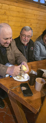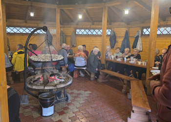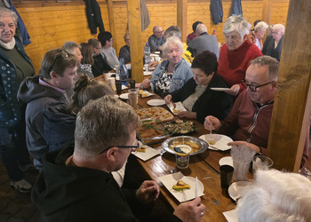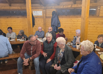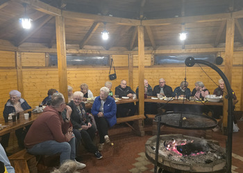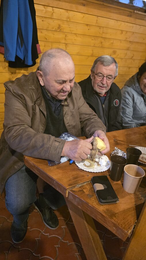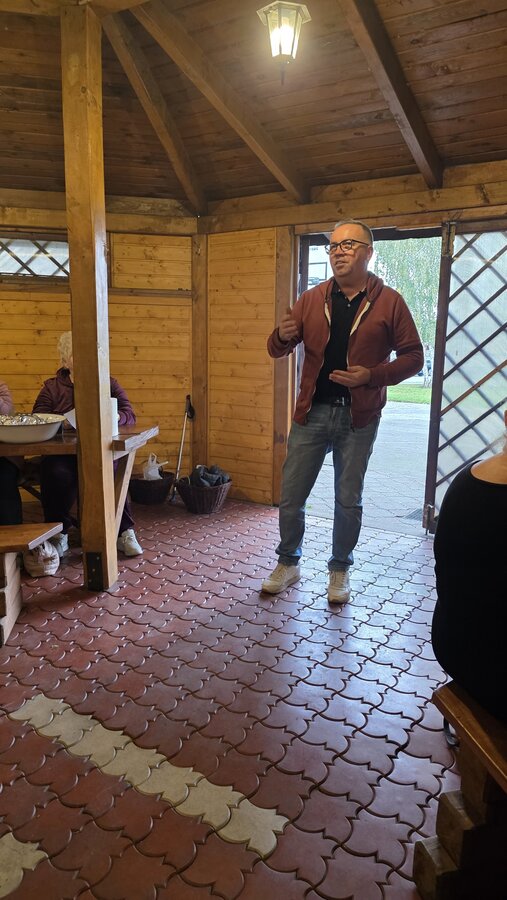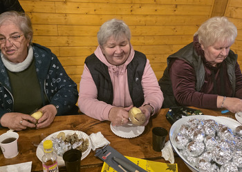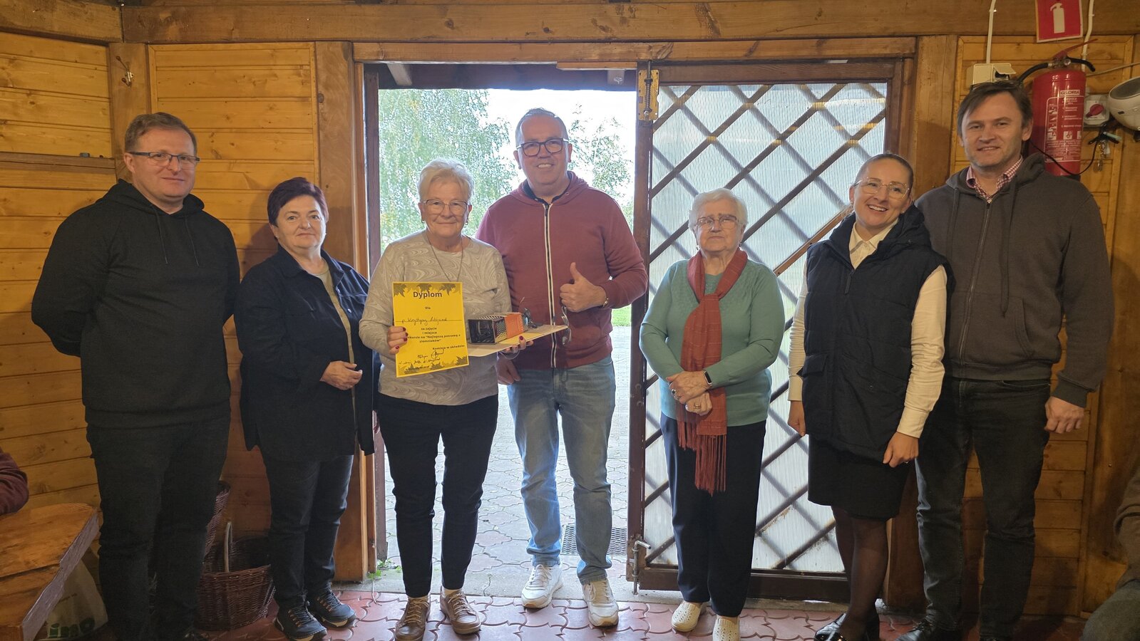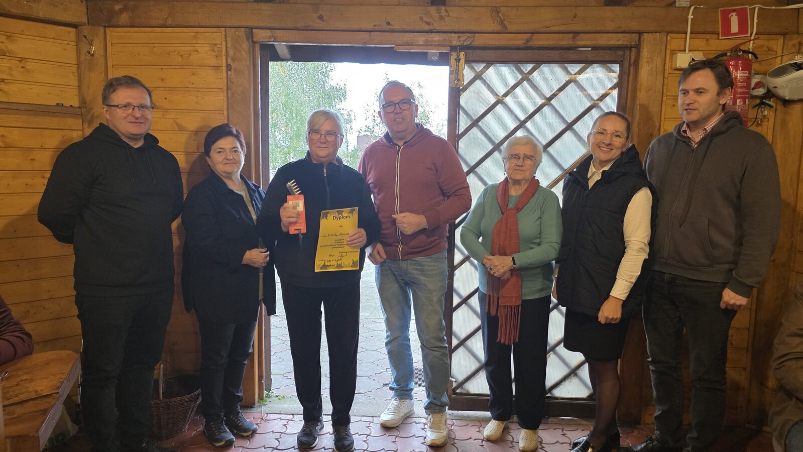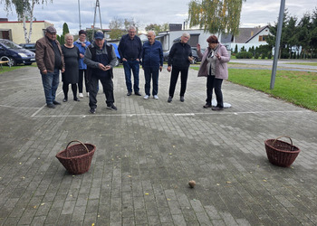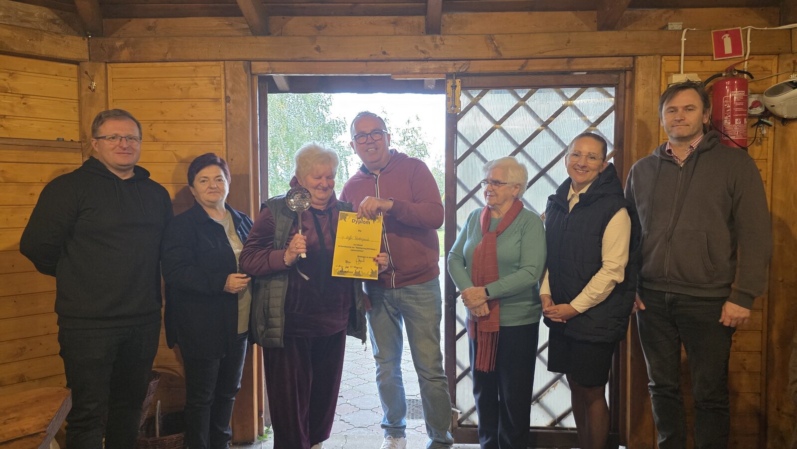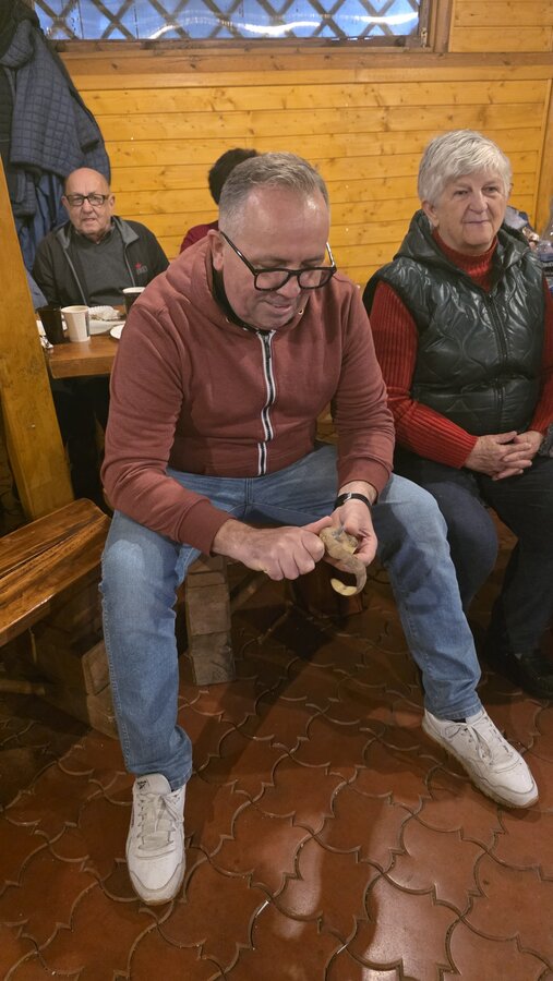W czwartek 9 października 2025 r. odbyło się klubowe święto pyry. Seniorzy wraz z zaproszonymi gośćmi zebrali się w Altance na Kisowni i wspólnie biesiadowali. Najpierw była kawa i ciacho, a później pierwsza konkurencja – rzut ziemniakiem do koszyka. Wśród licznej grupy śmiałków, po dogrywce, zwycięzcą został pan Franek. Nie mogło zabraknąć również naszego klubowego MasterChefa. W tej edycji zwyciężczynią została pani Krysia ze swoimi krokietami ziemniaczanymi. W końcu nadszedł czas na pieczone ziemniaczki. Smakowały wybornie razem z gzikiem oraz chlebem ze smalcem i ogórkiem kiszonym. Lecz to jeszcze nie był koniec naszego świętowania! Kolejną konkurencją było obieranie pyrki tak, żeby obierka była jak najdłuższa. Tu też bezkonkurencyjny okazał się pan Franek z obierką o długości 51 cm.