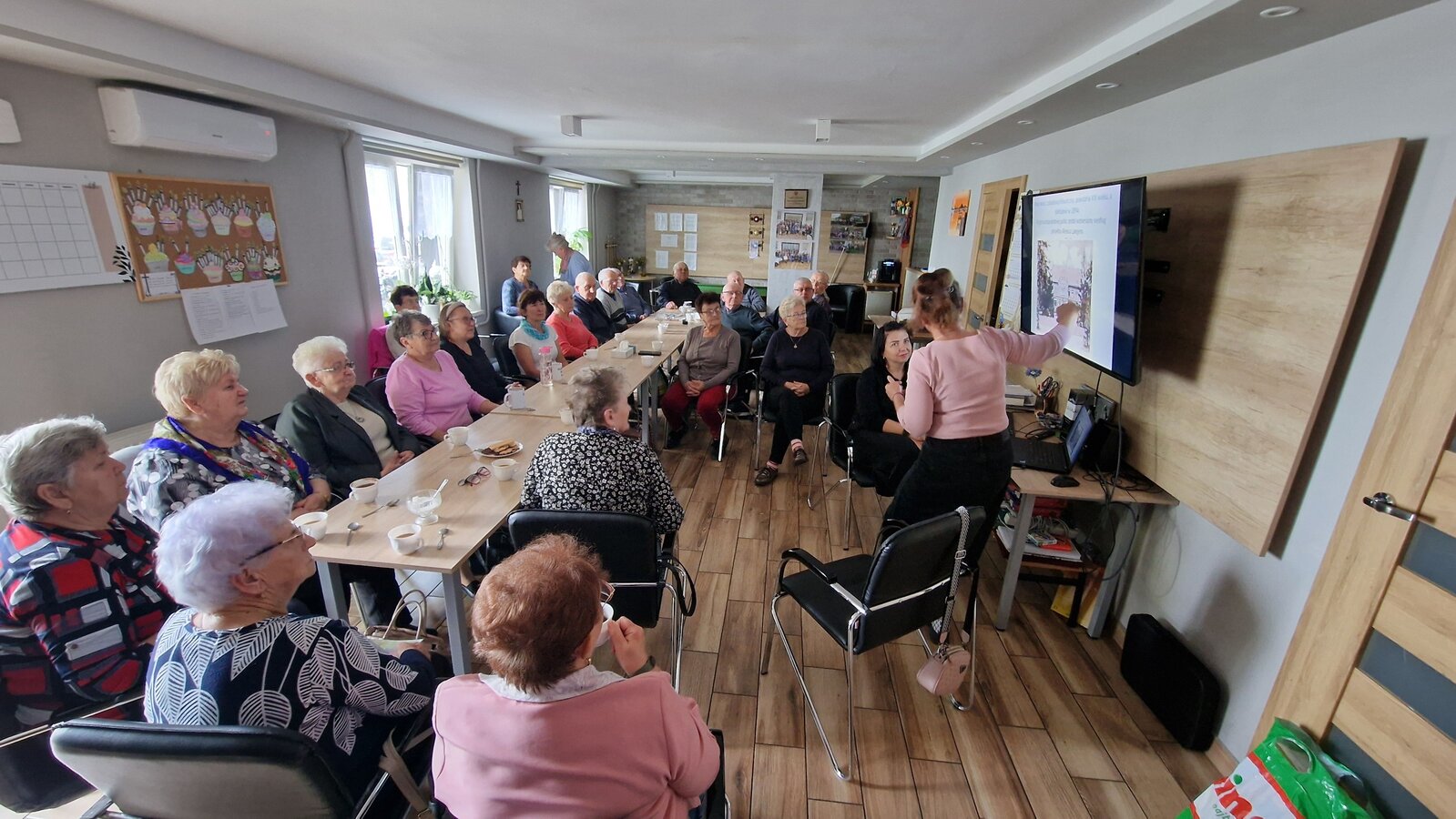 W poniedziałek 28 października 2024 roku, w ramach sekcji literackiej odbyło się spotkanie z bibliotekarkami, panią Grażyną Adamczewską oraz Agatą Pochanke. Na spotkanie przybyła bardzo liczna grupa Seniorów, która z zaciekawieniem słuchała wykładu.