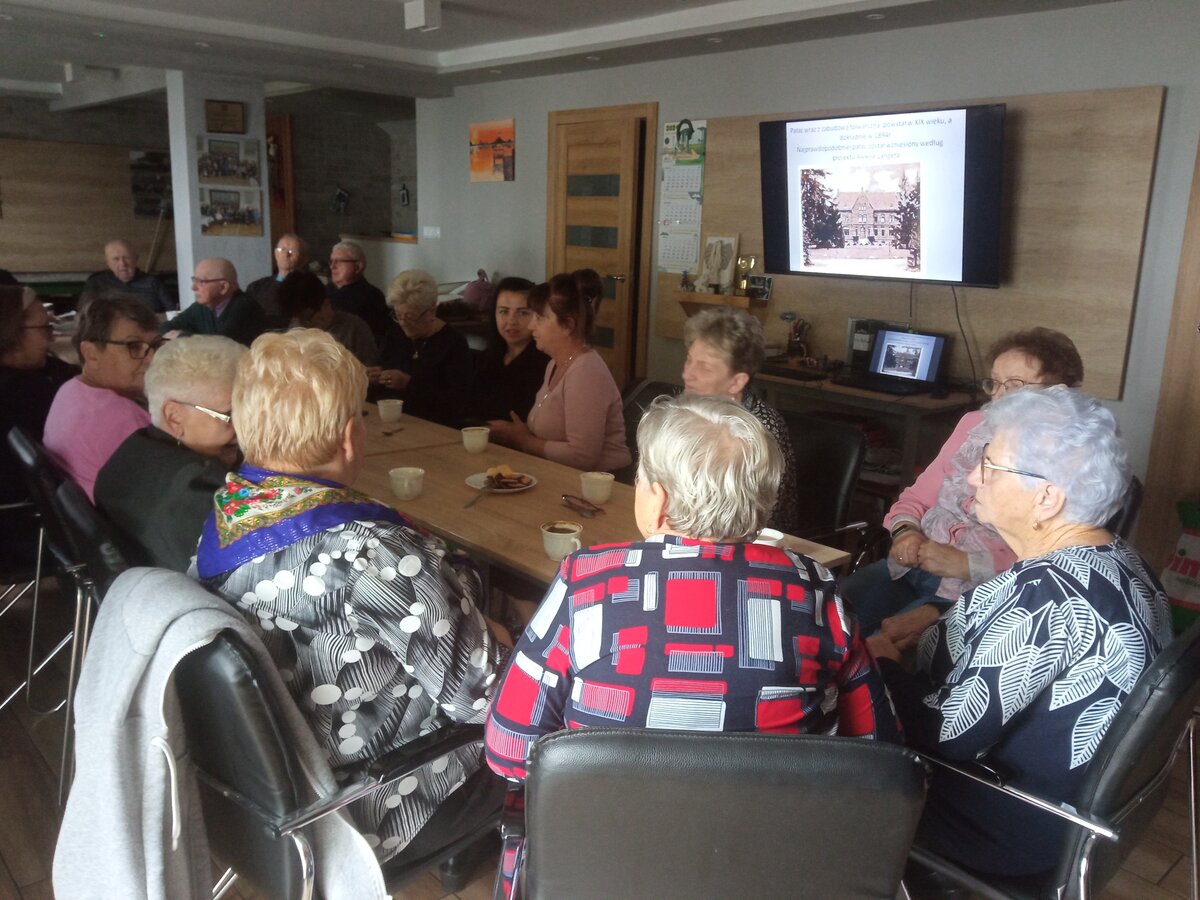 Prezentacja zawiera nie tylko opis historii, ale też zdjęcia, które wzbudziły w Seniorach wiele emocji – odnajdywali na fotografiach swoich znajomych oraz krewnych. Wielu Seniorów dopowiadało również historie związane z pałacem i tym co się tam znajdowało, np. rozlewnia oranżady.