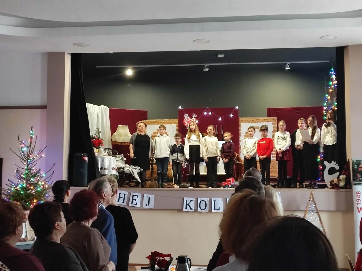 Podczas spotkania zaprezentowano przedstawienie przygotowane przez Panią Izabelę Schmidt, a najmłodsi mieszkańcy gminy wystąpili w przygotowanych rolach aktorskich. Całość dopełniła oprawa muzyczna, która wprowadziła uczestników w świąteczny nastrój.
