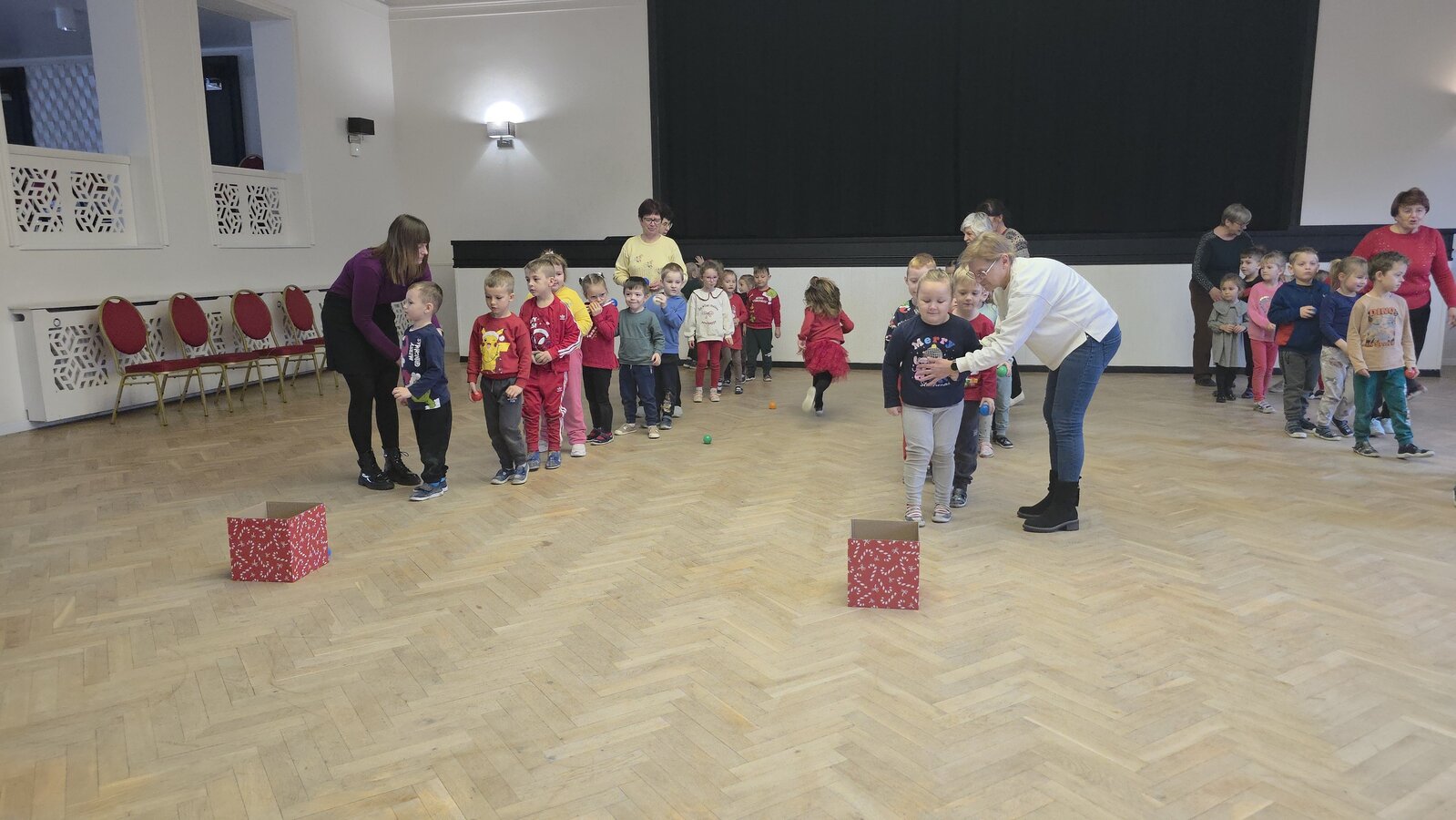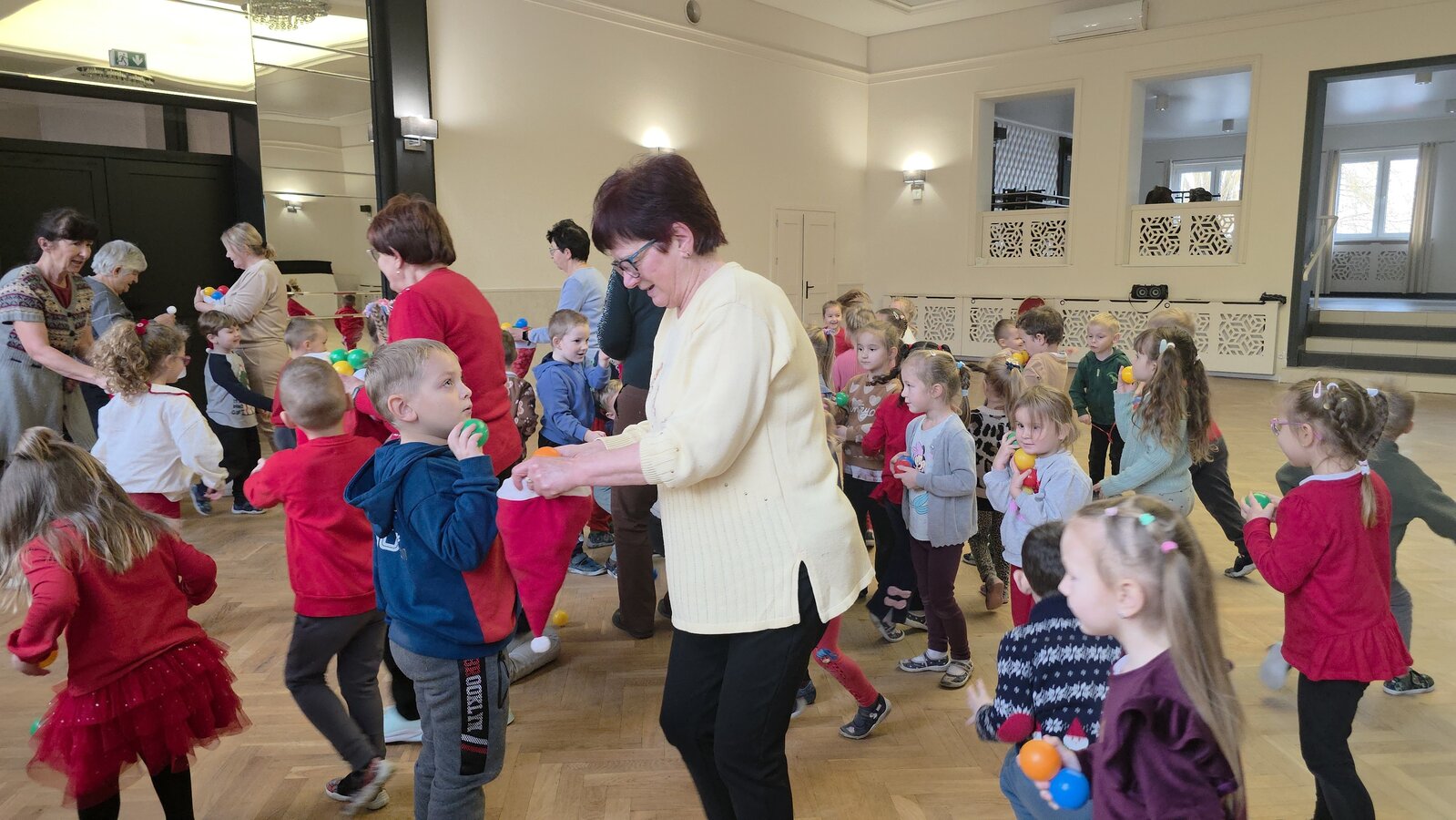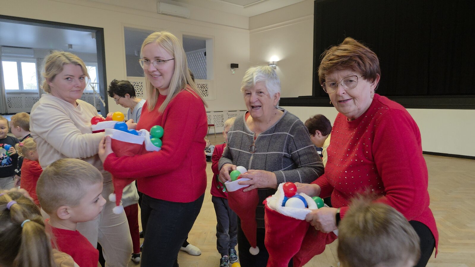 We wtorek, 16 grudnia 2025 roku, Seniorki z naszego Klubu wzięły udział w mikołajkowych rozgrywkach z dziećmi z grup Jeżyki i Biedronki z Samorządowego Przedszkola w Wijewie. Rozgrywki odbyły się na sali WDK w Brennie.