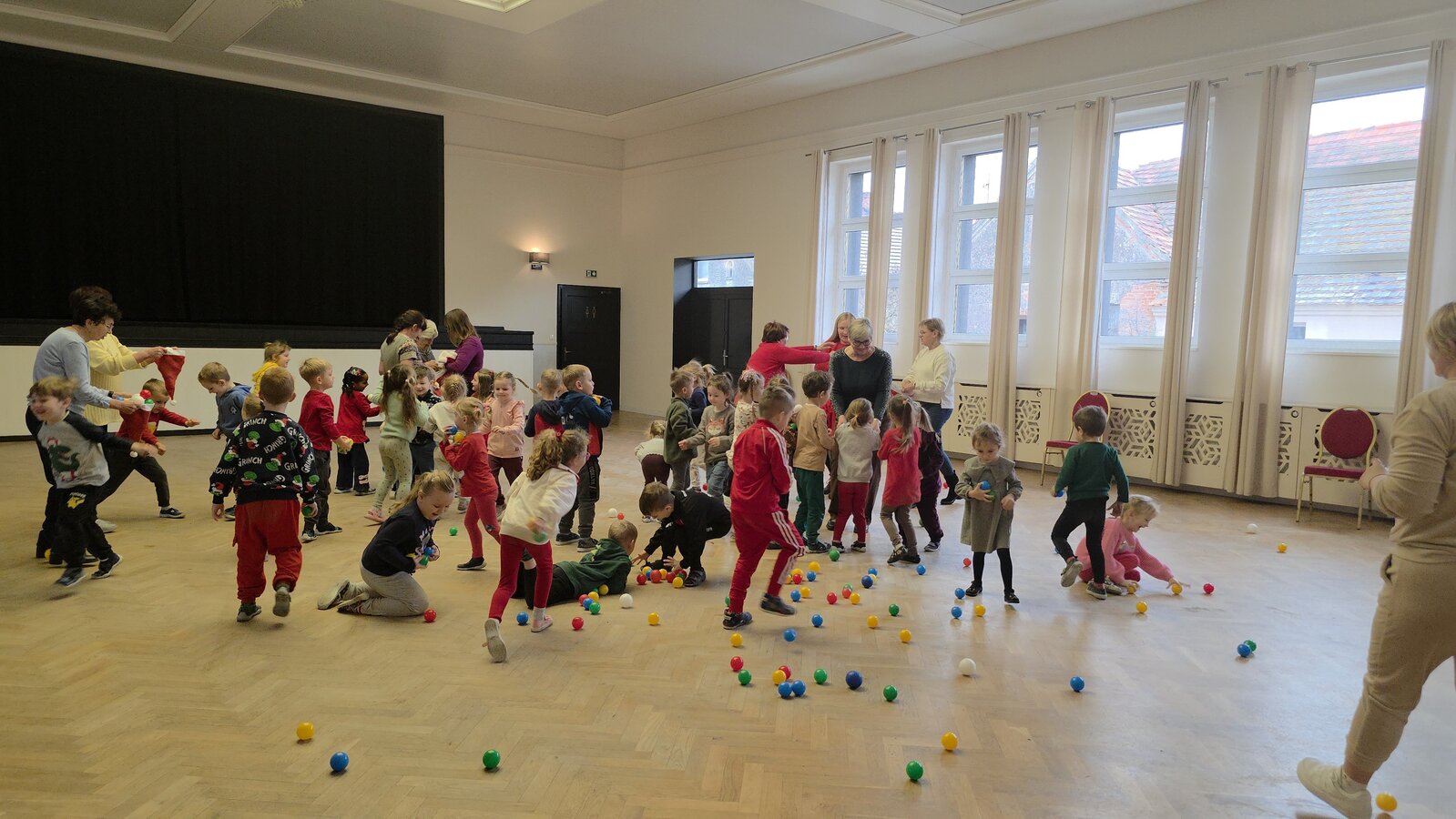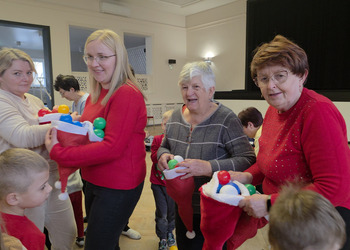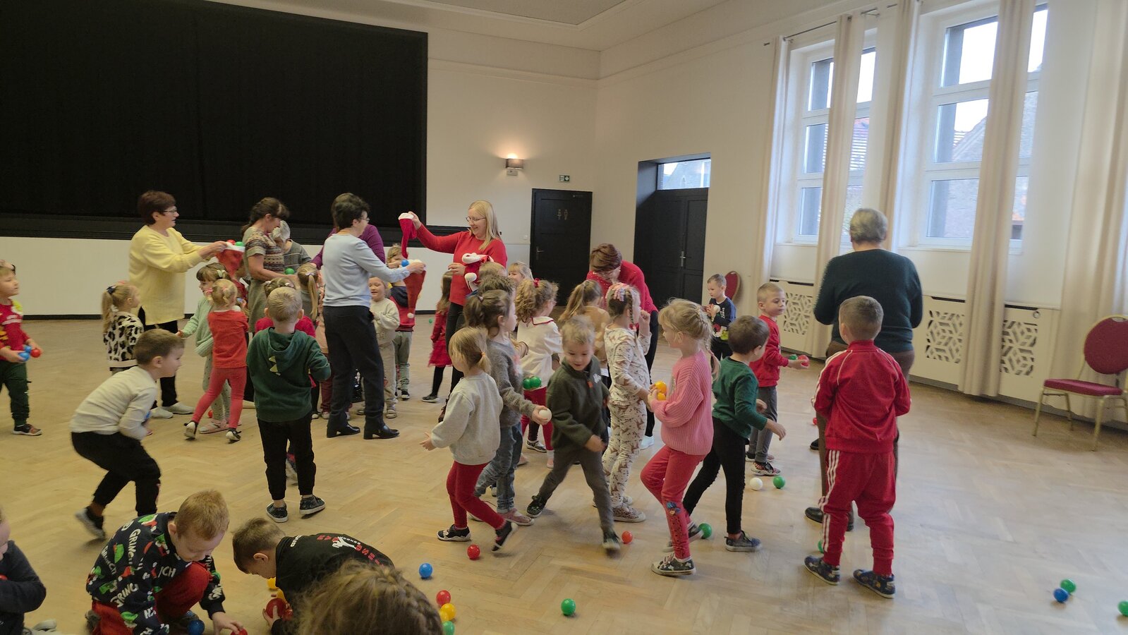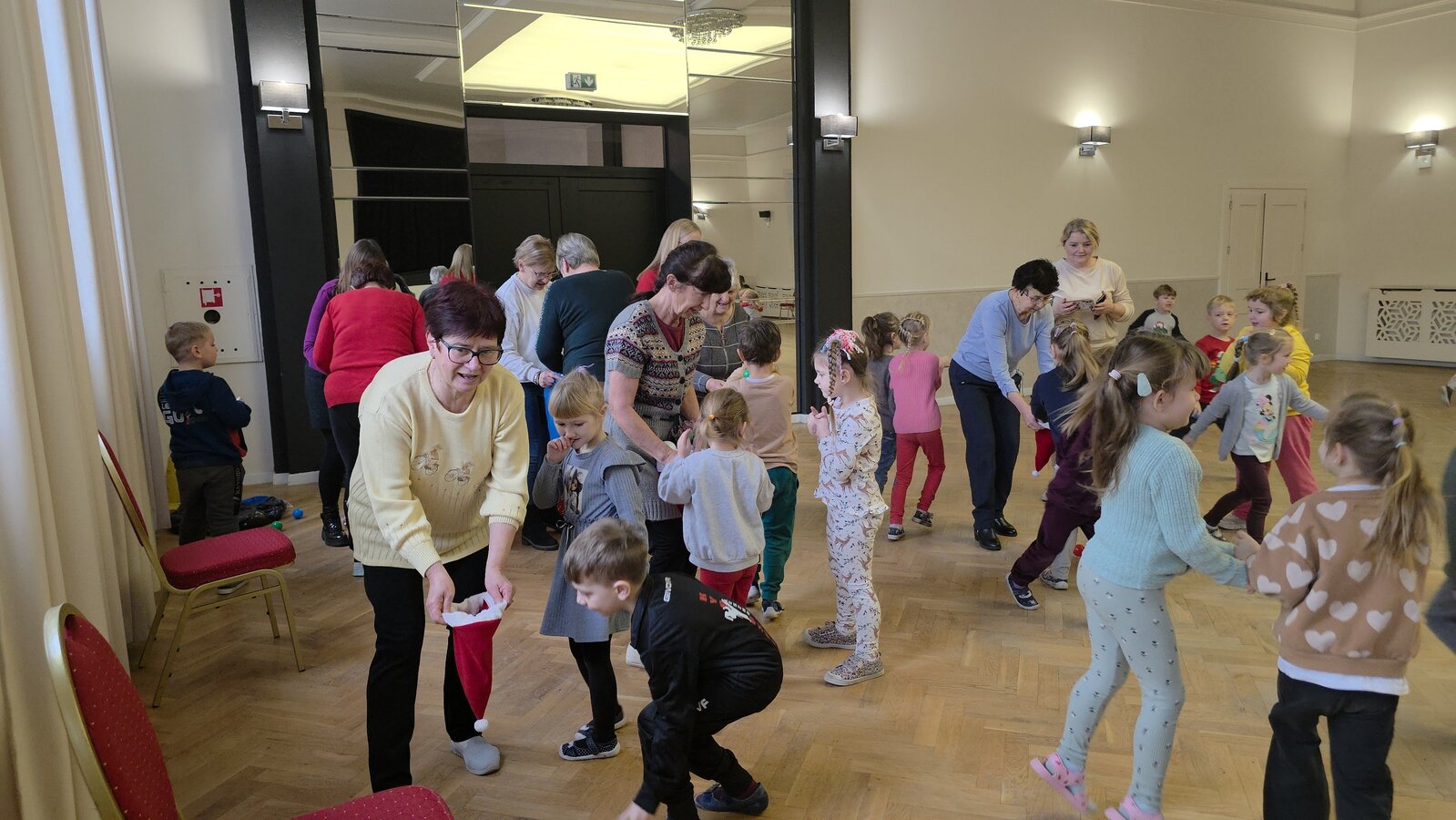 We wtorek, 16 grudnia 2025 roku, Seniorki z naszego Klubu wzięły udział w mikołajkowych rozgrywkach z dziećmi z grup Jeżyki i Biedronki z Samorządowego Przedszkola w Wijewie. Rozgrywki odbyły się na sali WDK w Brennie.