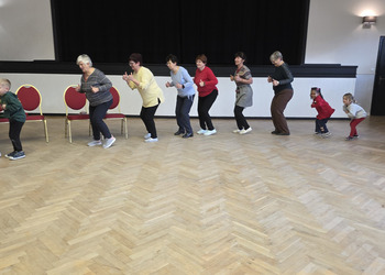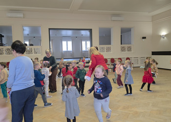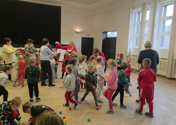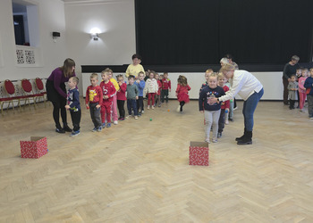 Panie wychowawczynie przygotowały dla Seniorek i dzieci wiele zadań. Były zabawy ruchowe, wyścigi rzędów oraz tańce i śpiew. Wszyscy doskonale sobie radzili z wyzwaniami, pomagając sobie i dopingując. Było wiele śmiechu i wyśmienitej zabawy.