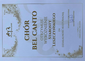 Nagroda Starosty Leszczyńskiego dla Chóru Bel Canto