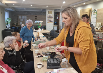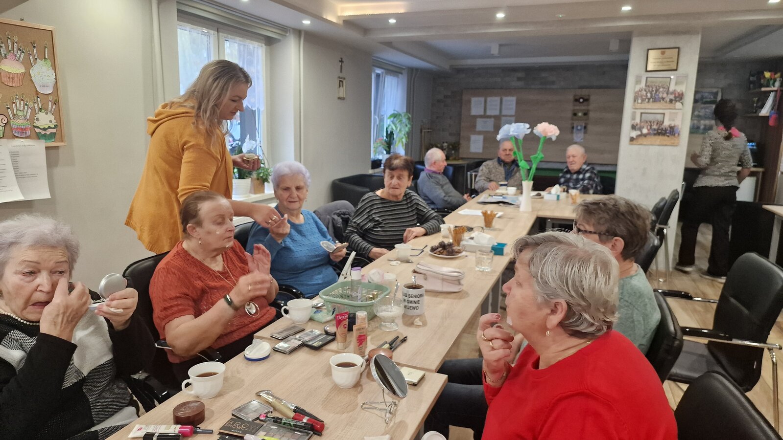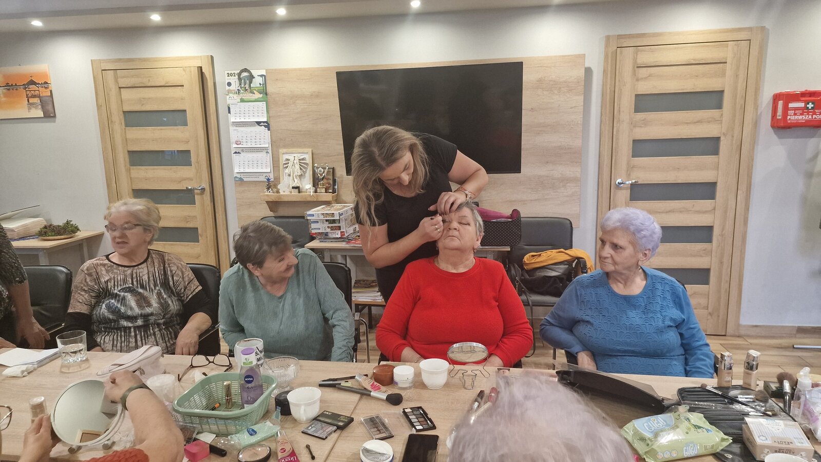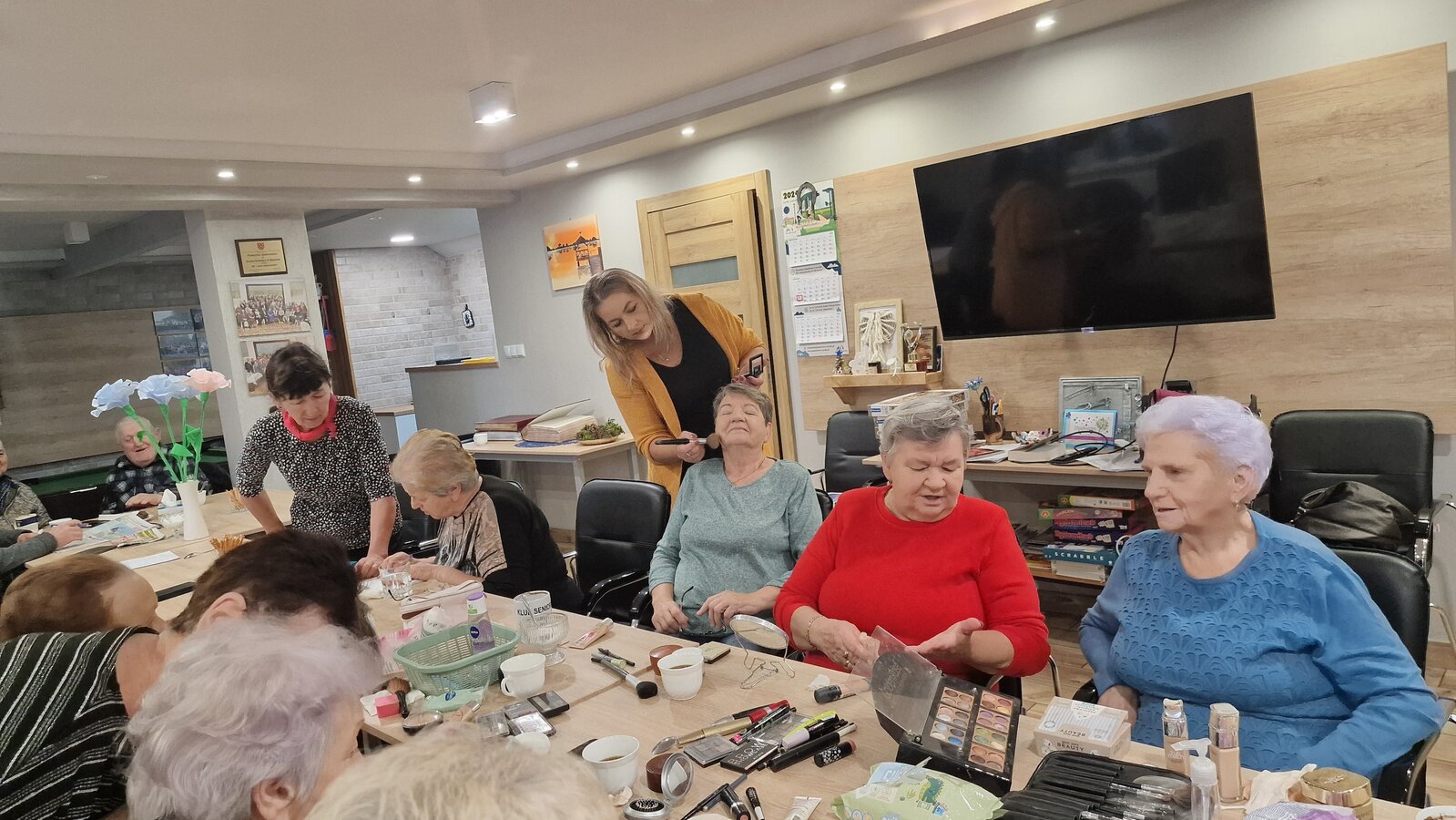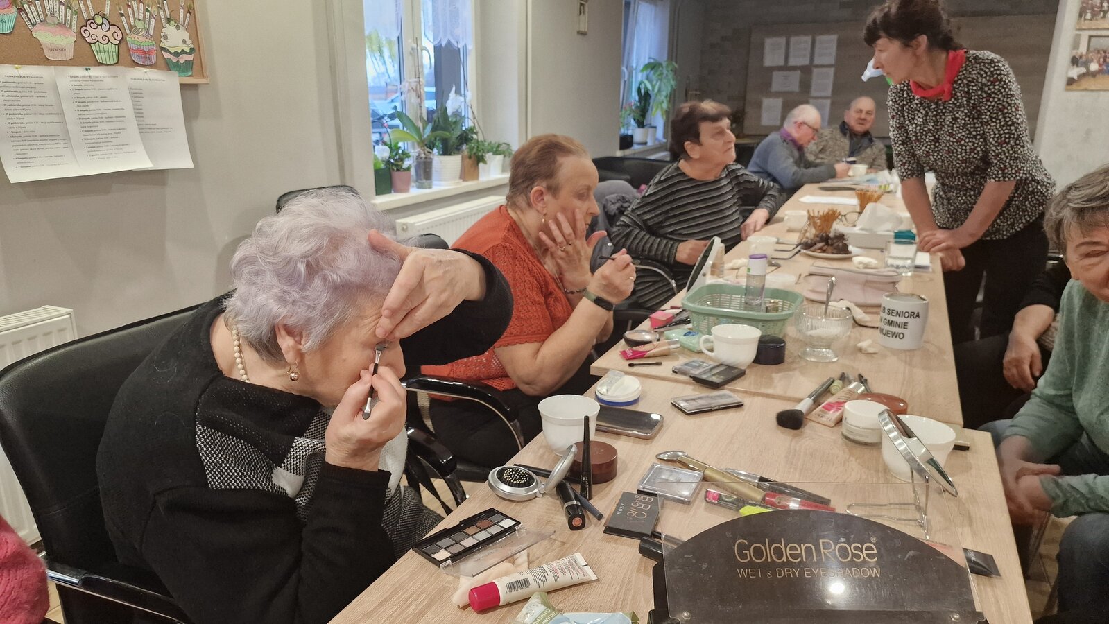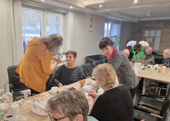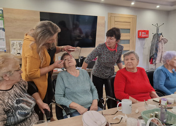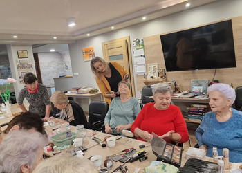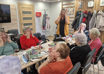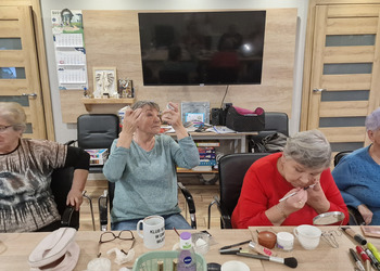 W poniedziałek, 18 listopada 2024 roku odbyły się w naszym Klubie warsztaty z kosmetyczką. Przyjechała do nas pani Alicja Jakubowska. Seniorki miały możliwość nauki makijażu. A że zbliżają się nasze klubowe Andrzejki, to też takie spotkanie było bardzo potrzebne – na pewno będą miały możliwość wykorzystania swoich nowych umiejętności. Pani Alicja przedstawiła krok po kroku jak wykonać makijaż, by był trwały, nie rozmazywał się i podkreślał piękno kobiety. Mając w domu kilka podstawowych kosmetyków, można wykonać świetny make-up, który z pewnością każdemu się uda. Panie poznały również triki, które mogą ułatwić zrobienie makijażu. Pani Alicja każdej Seniorce pomagała w niektórych krokach, ale w większości to one się malowały.