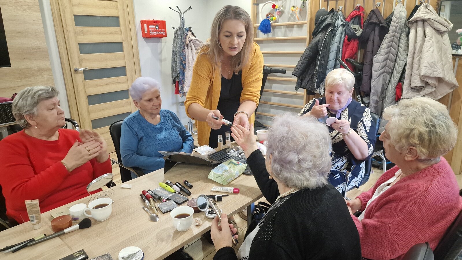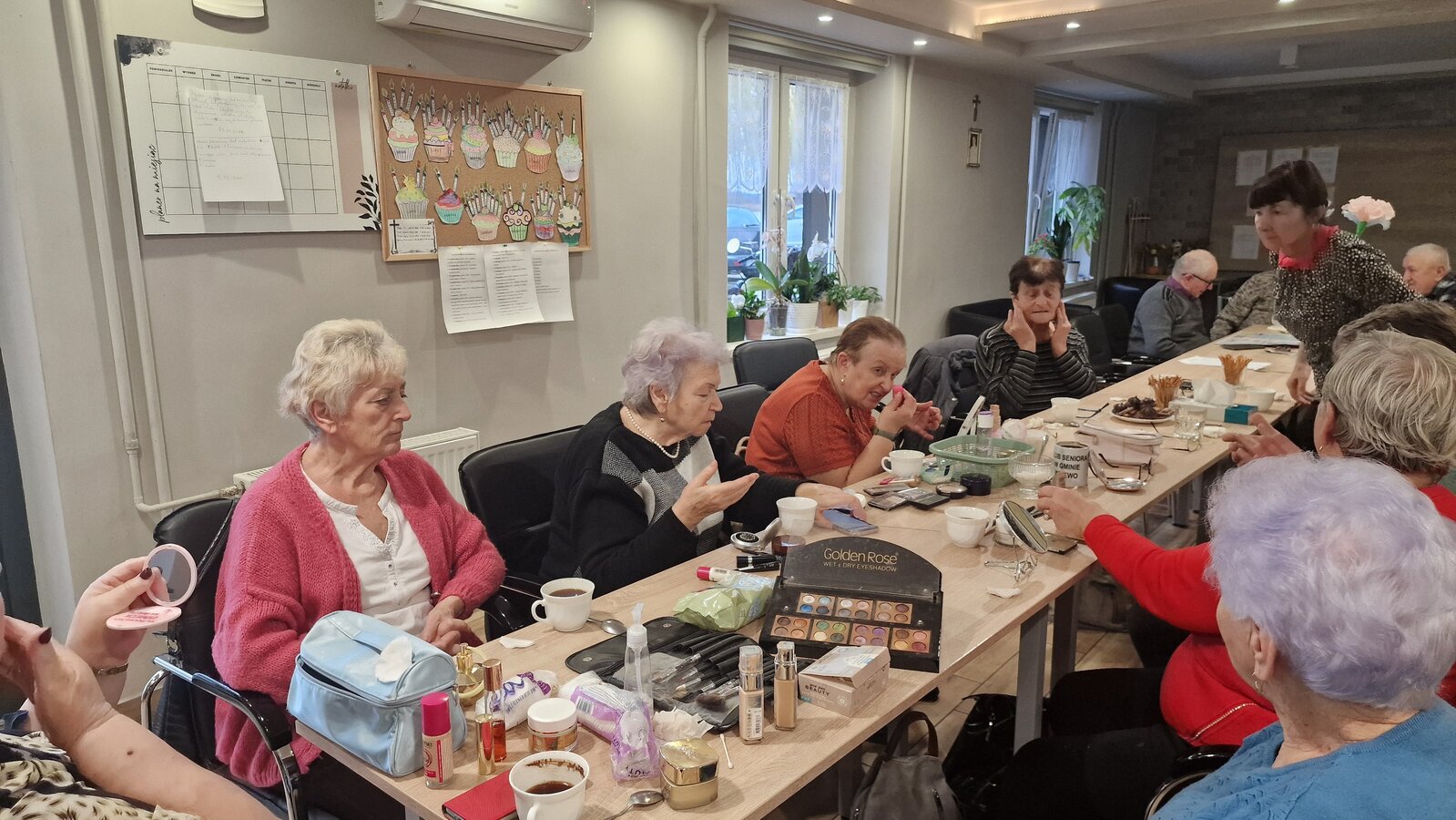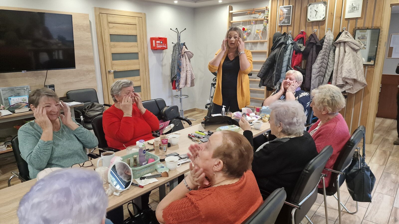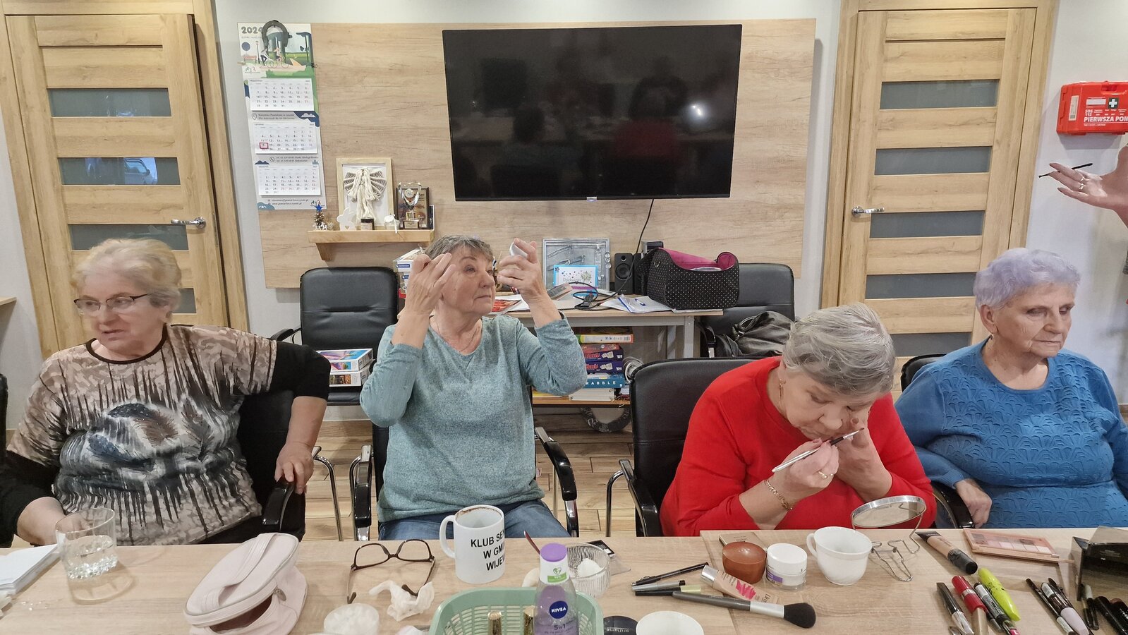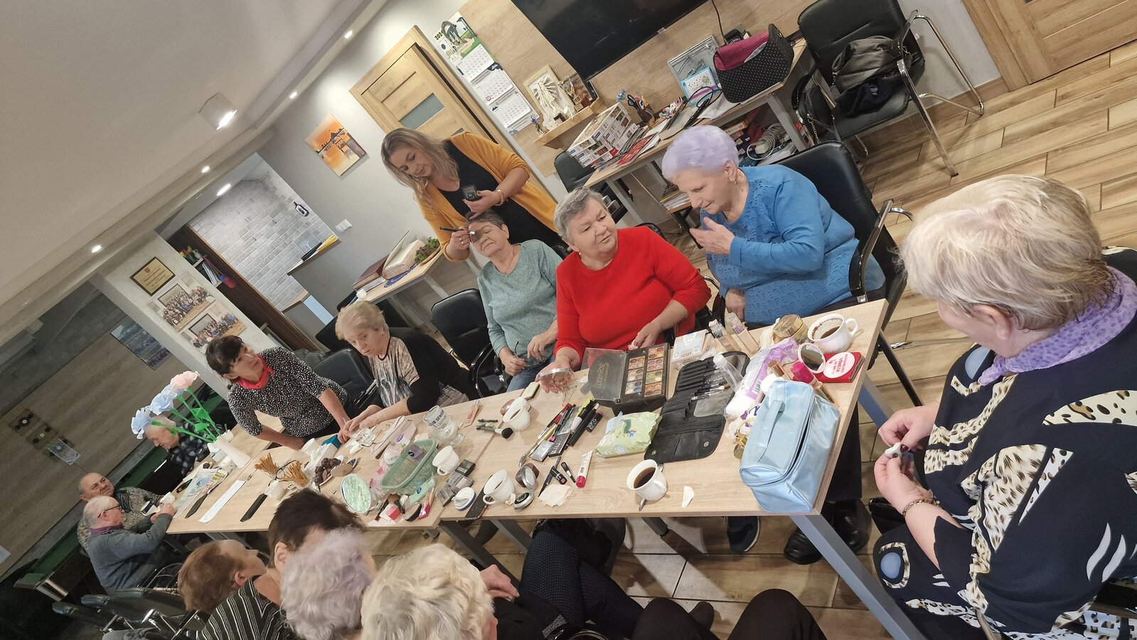 W poniedziałek, 18 listopada 2024 roku odbyły się w naszym Klubie warsztaty z kosmetyczką. Przyjechała do nas pani Alicja Jakubowska. Seniorki miały możliwość nauki makijażu. A że zbliżają się nasze klubowe Andrzejki, to też takie spotkanie było bardzo potrzebne – na pewno będą miały możliwość wykorzystania swoich nowych umiejętności. Pani Alicja przedstawiła krok po kroku jak wykonać makijaż, by był trwały, nie rozmazywał się i podkreślał piękno kobiety. Mając w domu kilka podstawowych kosmetyków, można wykonać świetny make-up, który z pewnością każdemu się uda. Panie poznały również triki, które mogą ułatwić zrobienie makijażu. Pani Alicja każdej Seniorce pomagała w niektórych krokach, ale w większości to one się malowały.