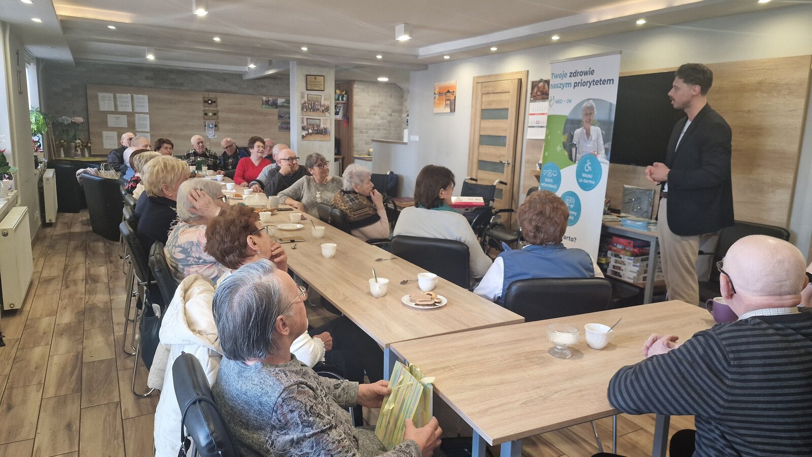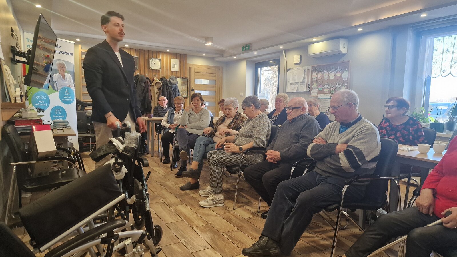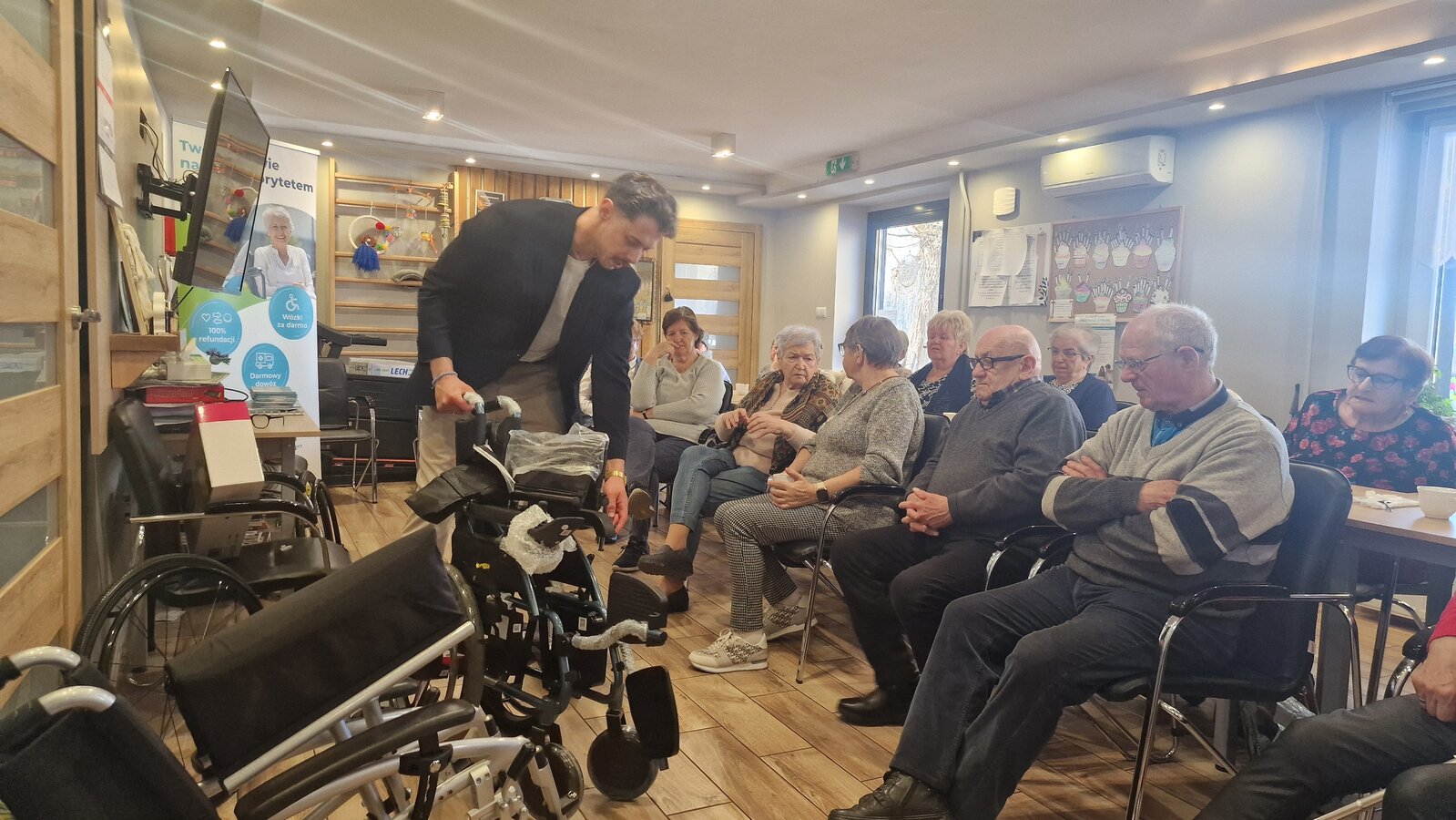 W czwartek, 20 marca 2025 r., w naszym Klubie odbyło się kolejne interesujące spotkanie, na którym frekwencja była bardzo wysoka. Było to spotkanie informacyjne, które poprowadził pan Wiktor Borzych – przedstawiciel medyczny z Centrum Medycznego MED – ON z Poznania, które dotyczyło możliwości uzyskania refundacji na sprzęt ortopedyczny i rehabilitacyjny. Pan Wiktor kompleksowo przedstawił Seniorom ofertę otrzymania dofinansowania do sprzętu rehabilitacyjnego, wózków inwalidzkich aktywnych oraz elektrycznych, a także ortez i kul.
