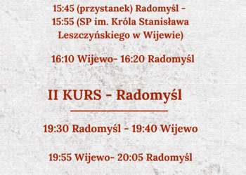 Poniżej znajduje się rozpiska, jak kursuje autobus, bus i samochody strażackie w ten dzień.