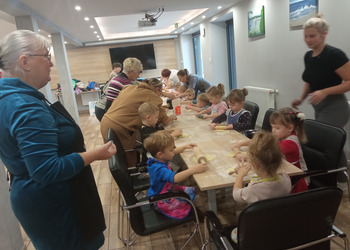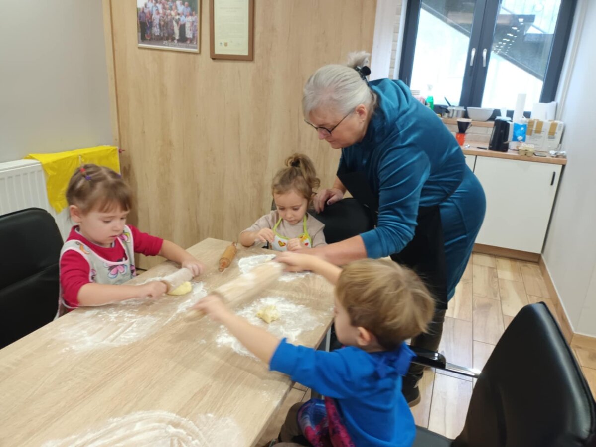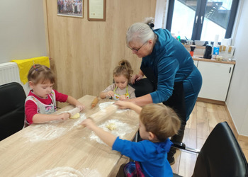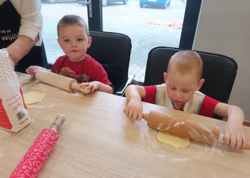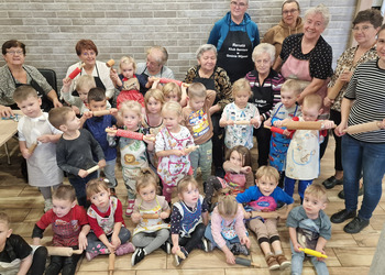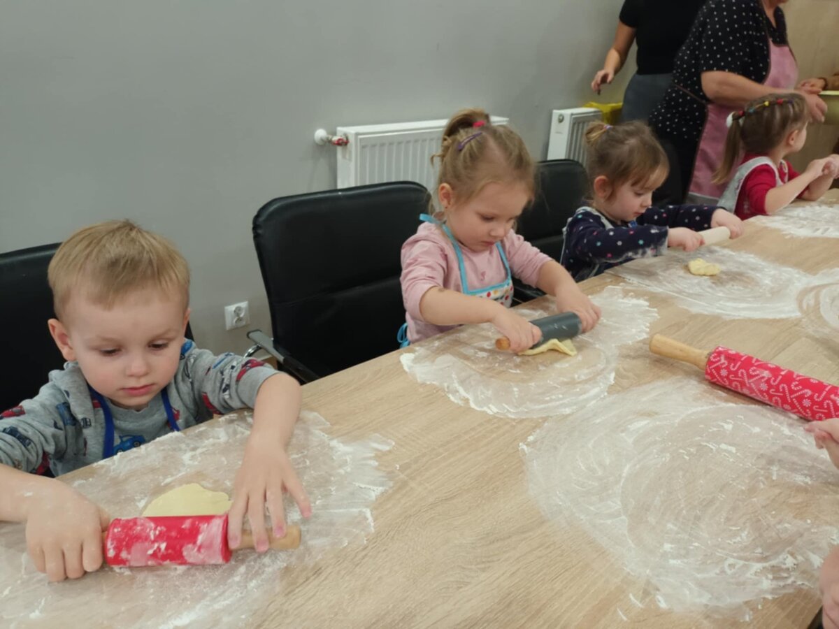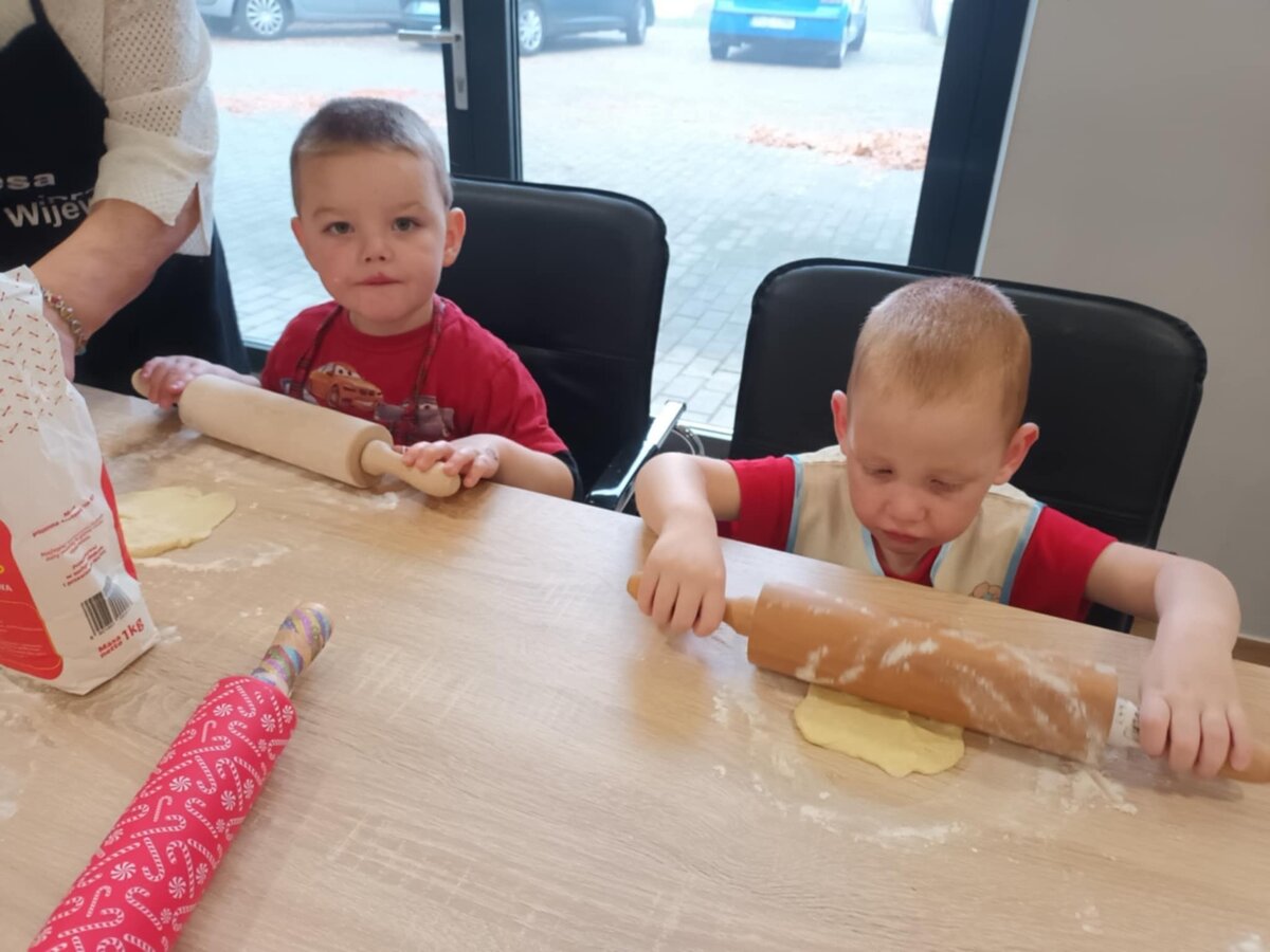 Głośno i wesoło zrobiło się w naszym Klubie w środę 6 listopada, a to za sprawą przedszkolaków z grupy „Pszczółki” z Samorządowego Przedszkola w Wijewie. Dzieciaczki przyjechały do nas piec rogaliki. Każdy przedszkolak miał swój fartuszek oraz wałek. Nasze Seniorki zrobiły wcześniej ciasto, które po wyrośnięciu dzieci wałkowały i nadziewały powidłami. Zabawa była wspaniała! Dzieci świetnie sobie radziły i spod wszystkich pracowitych rączek wyszły pyszne rogaliki, które później wszyscy zjedli. A że ciasta było dużo, nasze Seniorki zrobiły większą ilość, którą dzieci zabrały ze sobą do domów.