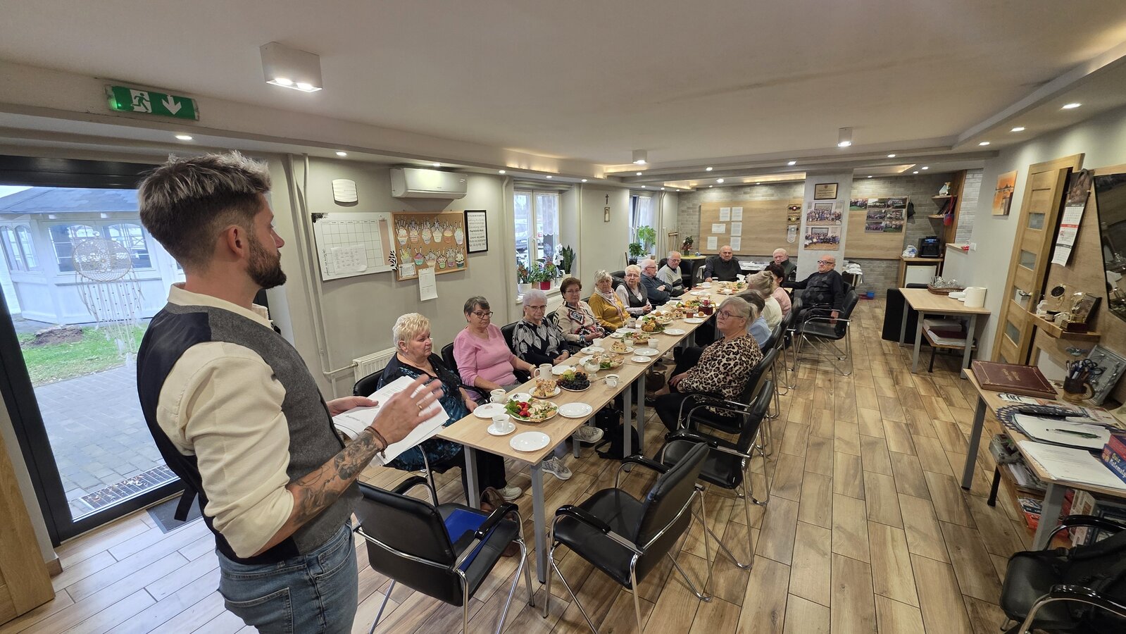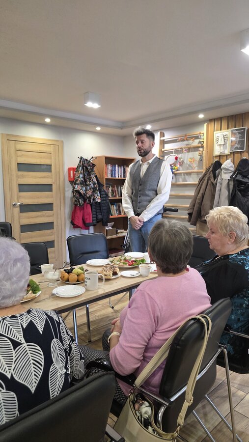 Spotkanie przyciągnęło wielu Seniorów, a prowadzący Mateusz Łaźniak w przystępny i ciepły sposób przybliżył uczestnikom pojęcie odporności psychicznej i dobrostanu, pokazując że można je rozwijać przez całe życie. Omówione zostały filary odporności psychicznej, znaczenie pozytywnego myślenia, siłę relacji społecznych, a także rolę aktywności fizycznej i intelektualnej w utrzymaniu dobrego samopoczucia oraz wpływ jedzenia na nasze samopoczucie. Seniorzy poznali też proste ćwiczenia oddechowe i relaksacyjne, które będą mogli wykorzystać w życiu codziennym.
