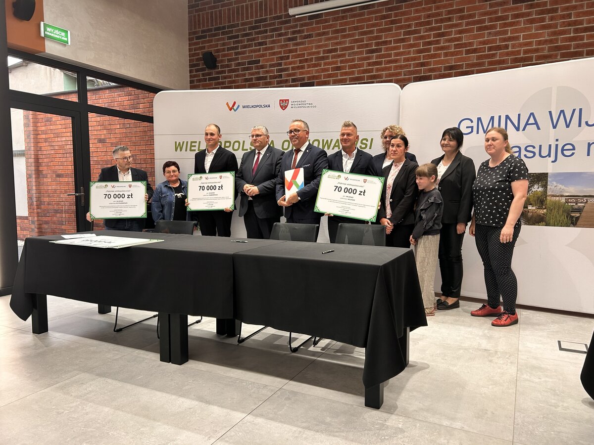 Dnia 11 lipca 2025 roku w Centrum Kulturalno-Kongresowym w Wijewie odbyło się uroczyste podpisanie umów na dofinansowanie projektów w ramach XV edycji konkursu „Pięknieje Wielkopolska Wieś”. Dokumenty podpisali: Wicemarszałek Województwa Wielkopolskiego – Pan Krzysztof Grabowski, Wójt Gminy Wijewo – Pan Mieczysław Drożdżyński oraz Skarbnik Gminy – Pani Ilona Giera.